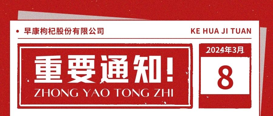 宁夏回族自治区早康枸杞股份有限公司刚刚获得了两个殊荣——公司商标“早康”再次被命名为“宁夏枸杞知名品牌”,公司花豹湾种植基地被命名为“宁夏枸杞优质基地”。...