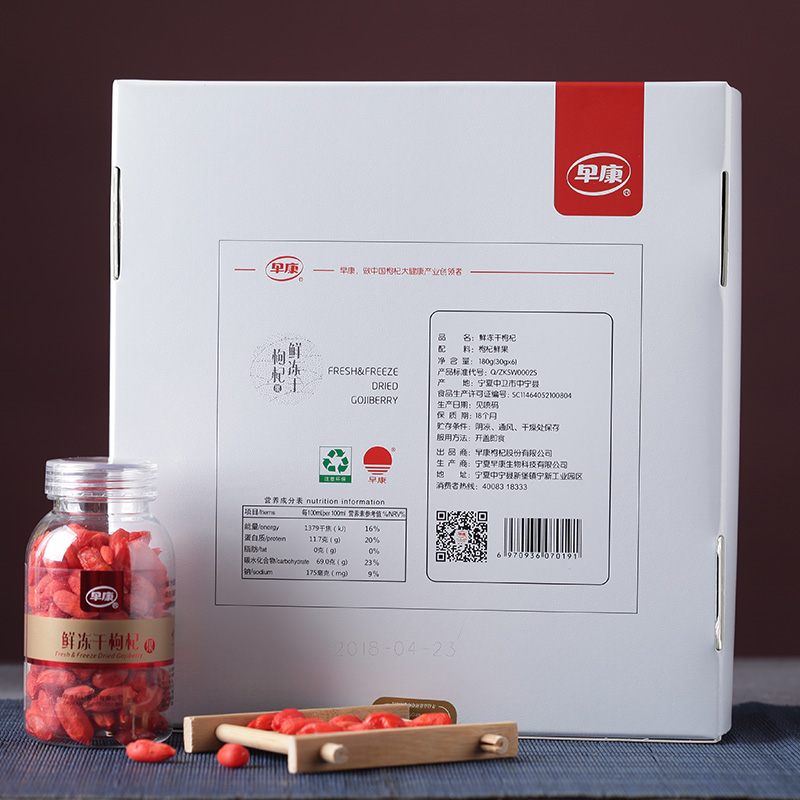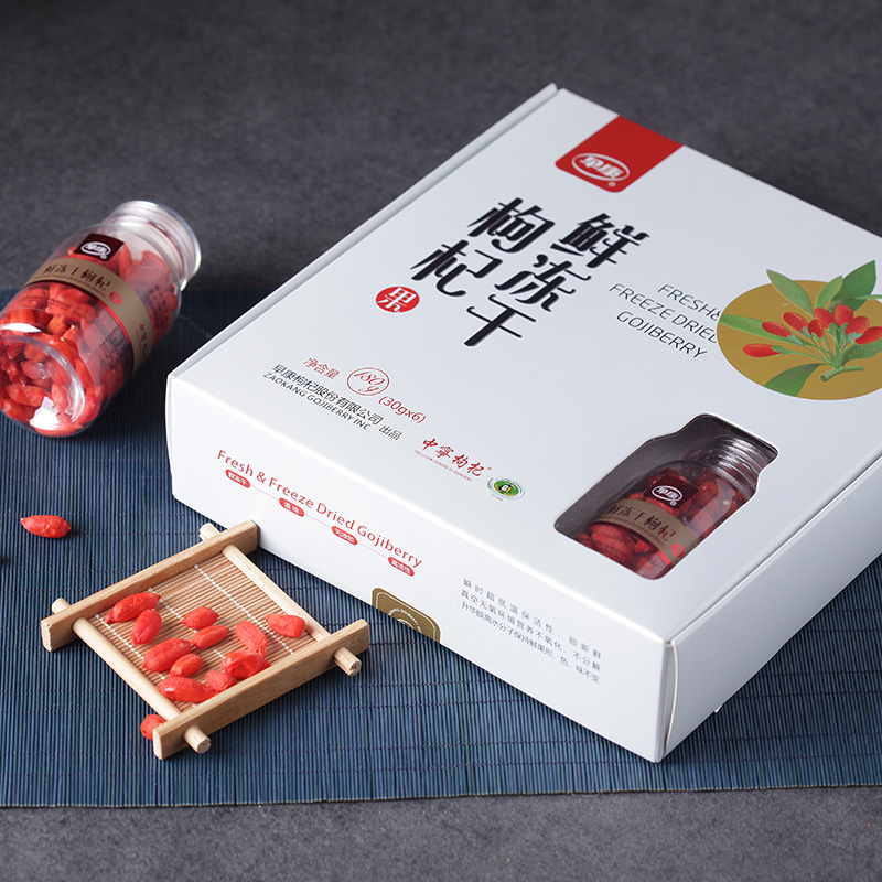 Clean the freshly picked goji berry, after sterilization and disinfection and quick freezed to -18℃for 40 hours, It maximized the preservation of fresh fruit in vitamin nutrition protein materials.